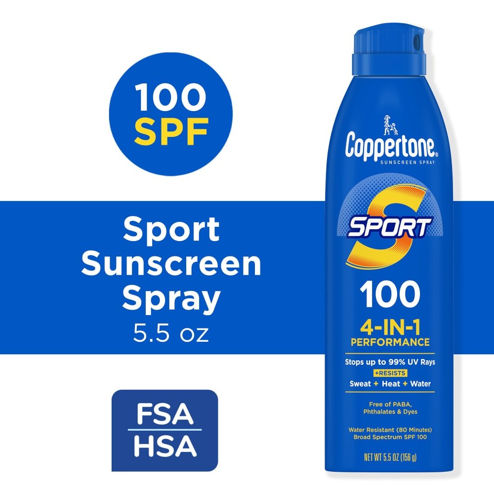 Coppertone Sport Sunscreen Spray, Broad Spectrum SPF 100 Water Resistant Spray Sunscreen