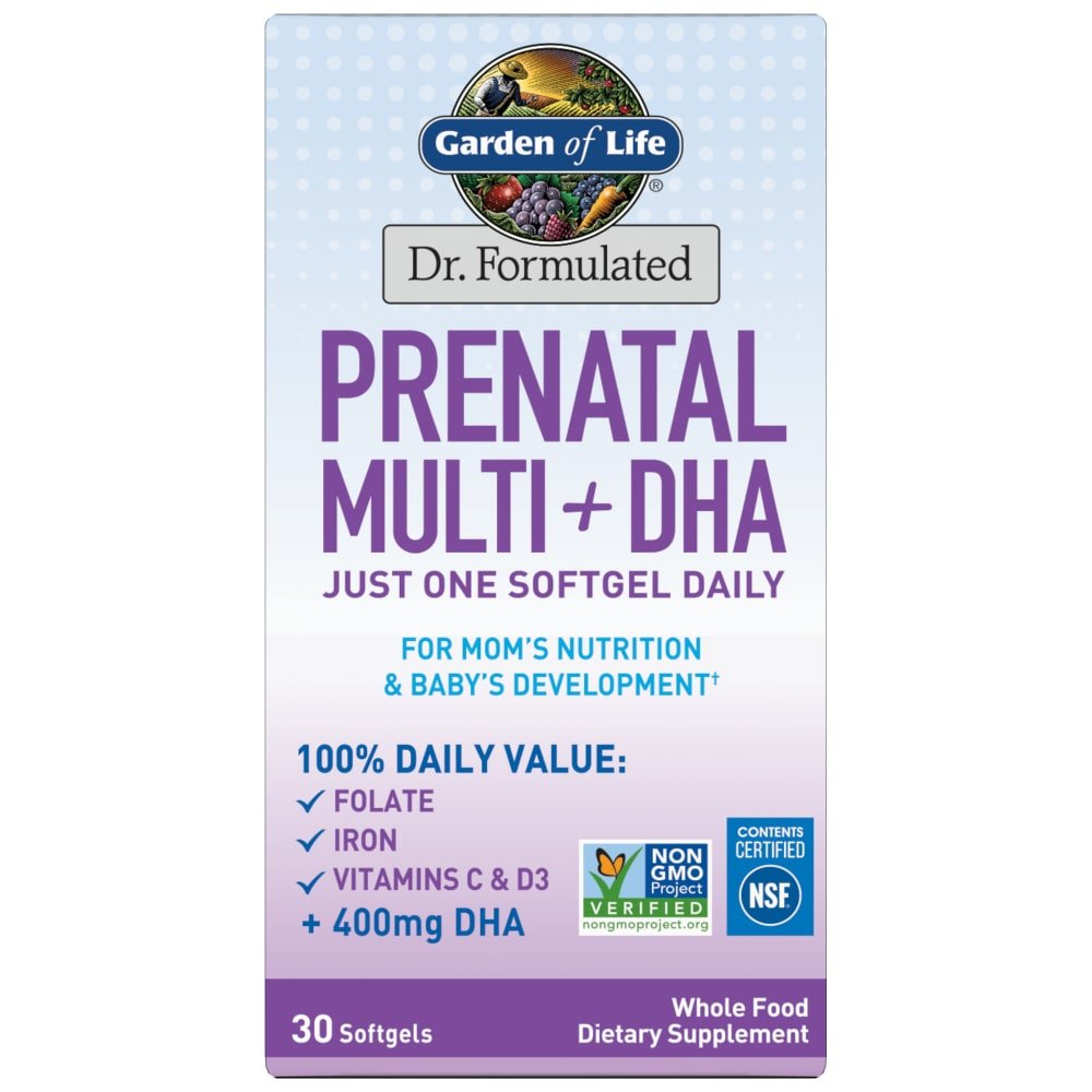 Garden of Life Dr. Formulated Prenatal Multi + DHA with Folate, Iron One a Day Softgels, 400 mg DHA