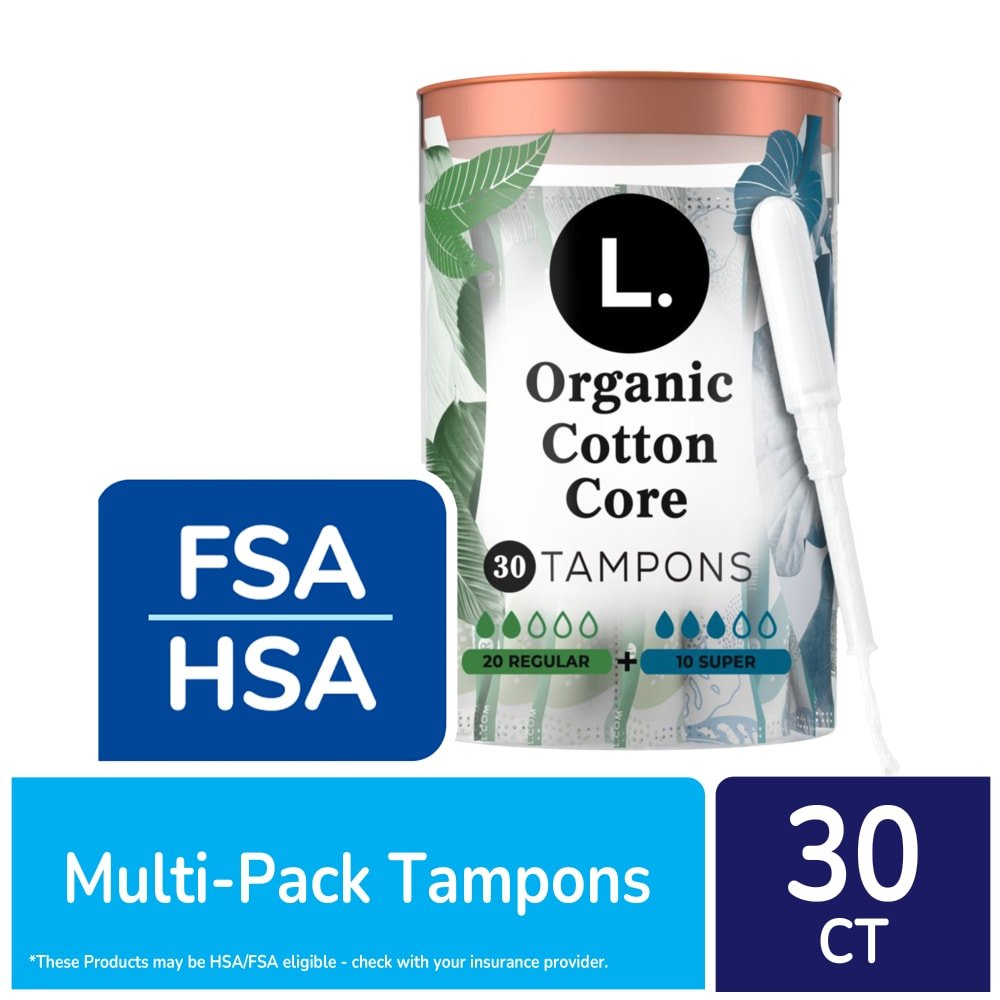 L. Organic Cotton Core Tampons Multipack Regular + Super Absorbency