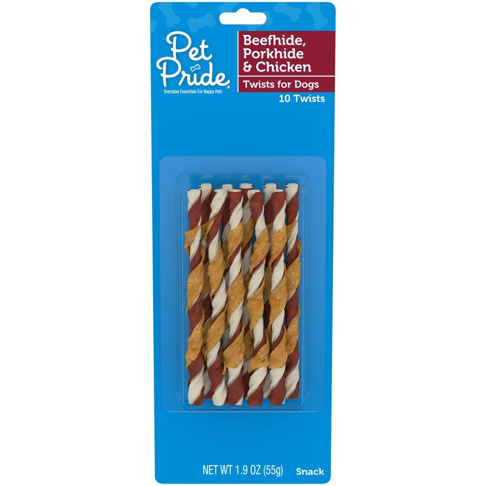 Pet Pride® Beefhide Porkhide and Chicken Twists for Dogs